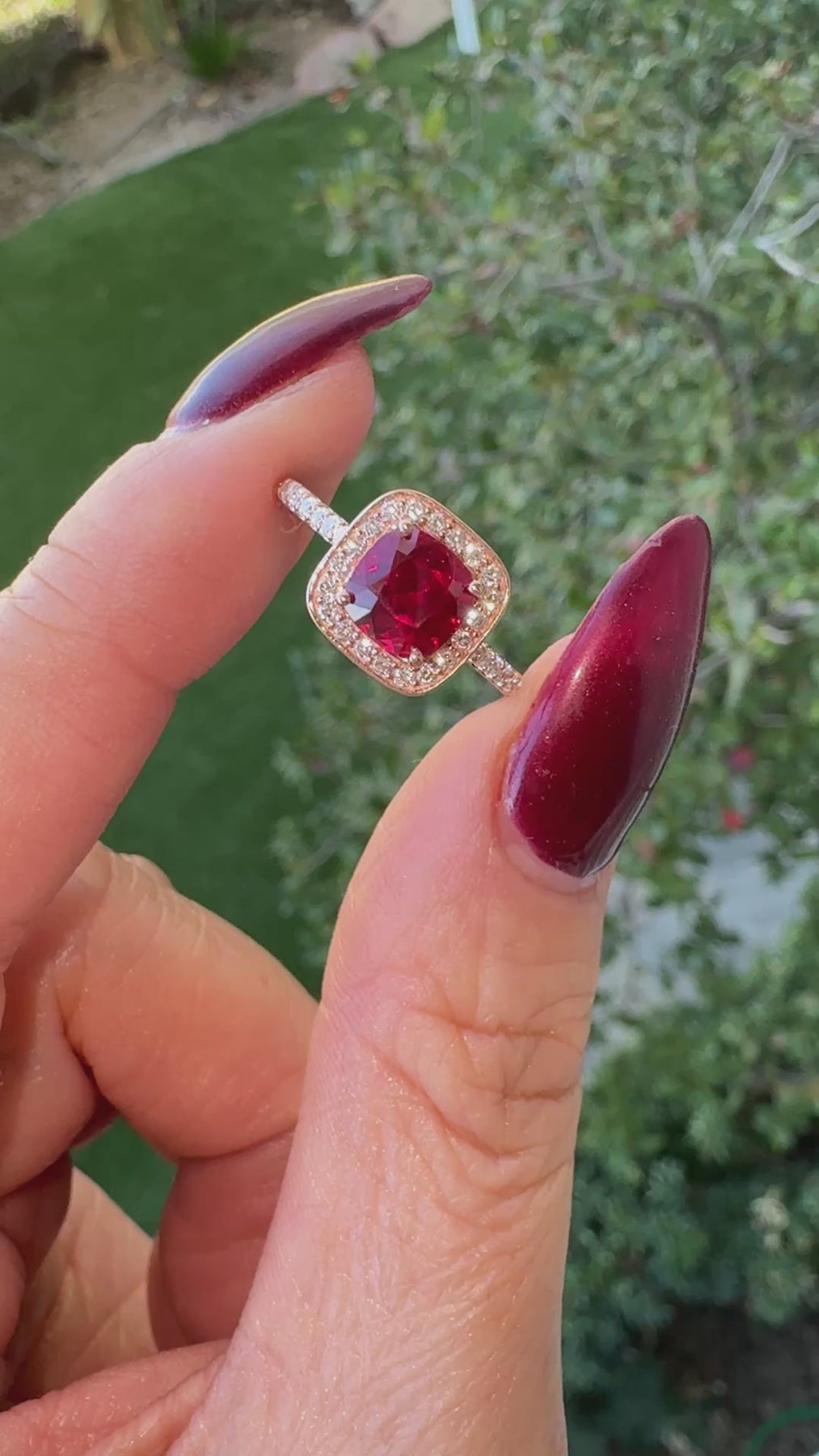 Valma Cushion Ruby Floating Diamond Halo and Sides Ring-FIRE & BRILLIANCE