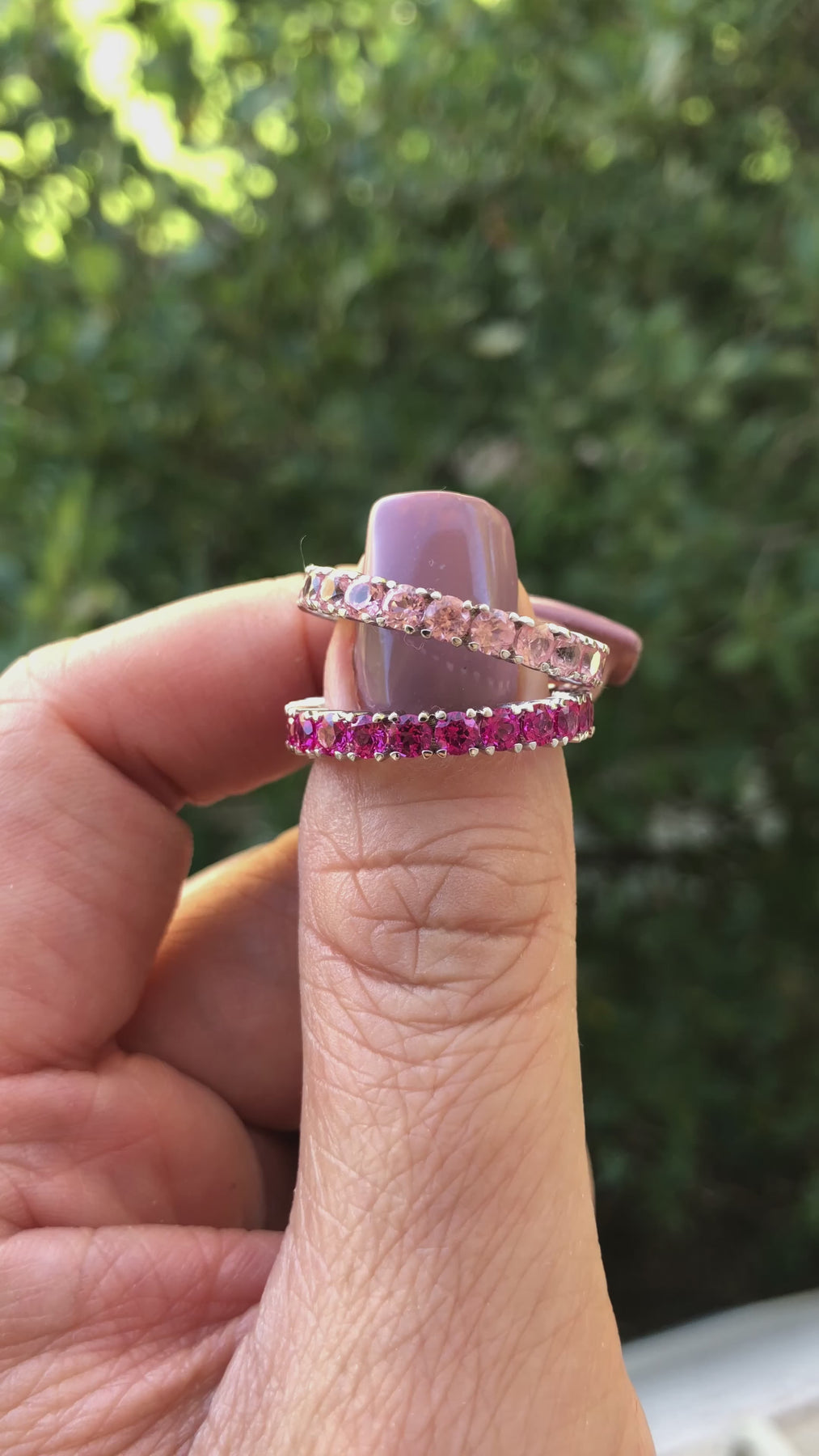 Lilaine Pink Sapphire Full Eternity 3mm Round Cut Engagement or Anniversary Ring