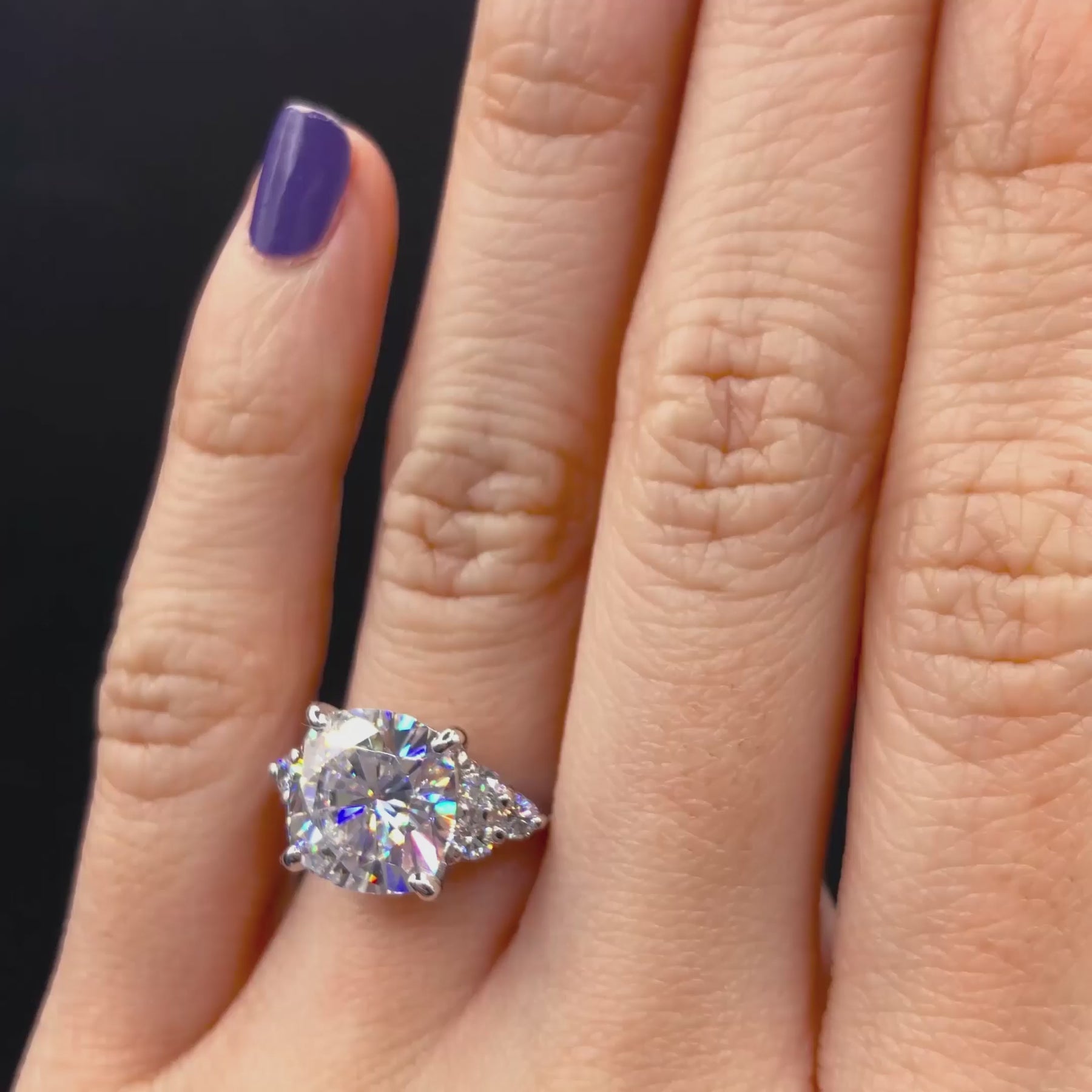 Biddle Cushion Moissanite Trio Side Diamonds Engagement Ring-Custom-Made Jewelry-Fire & Brilliance ®