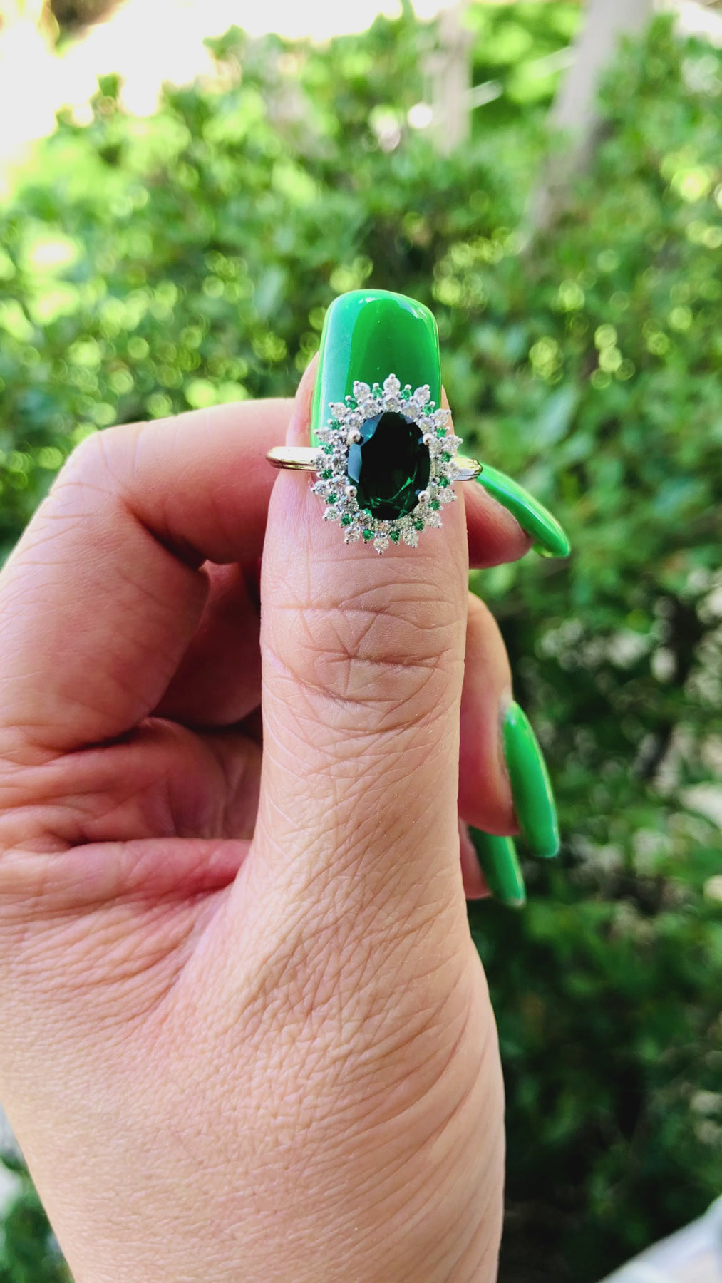 Eridanus Oval Emerald Cluster Diamond and Emerald Halo Wedding Ring ver.1