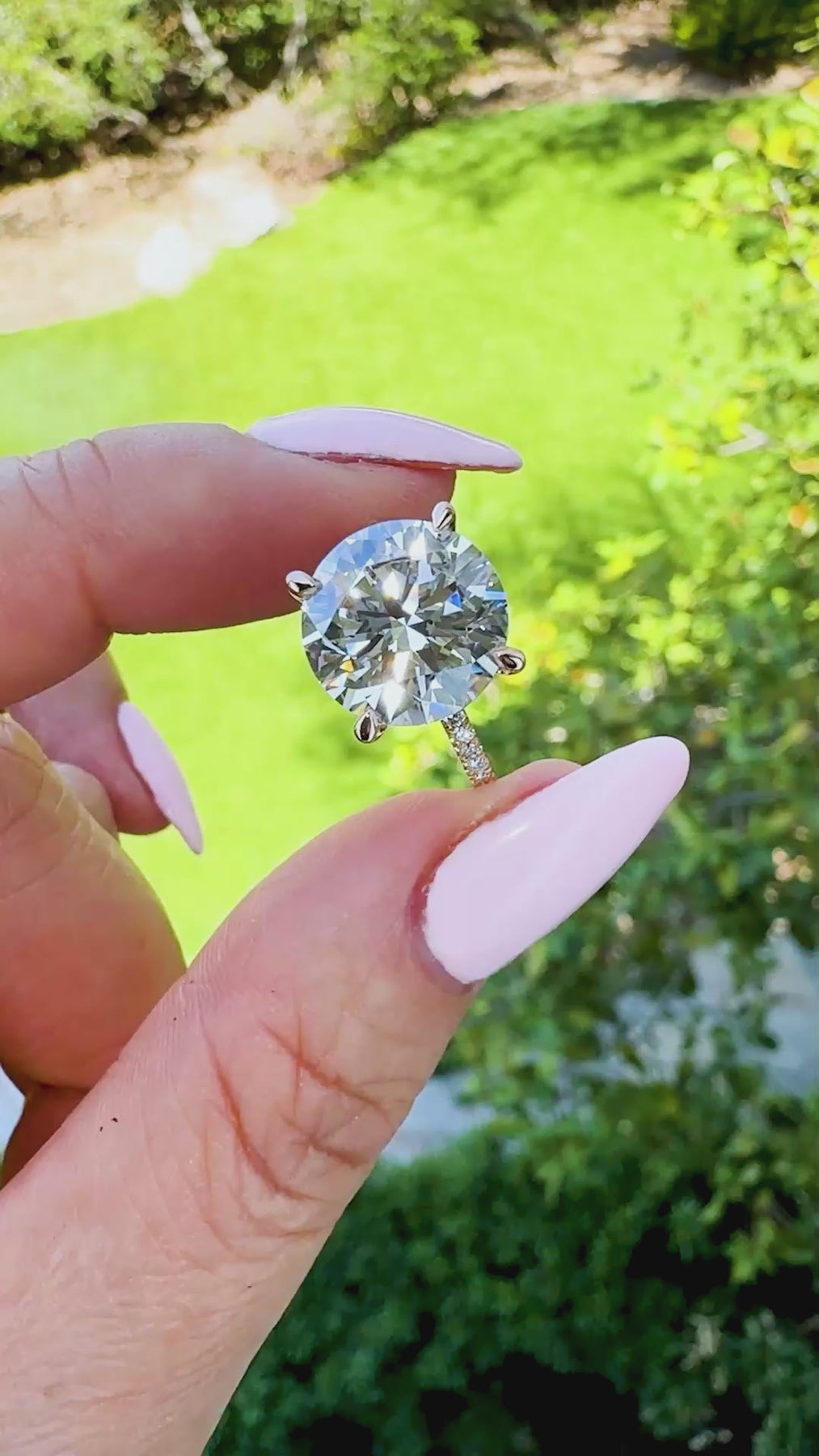 Mayeli Round Moissanite 4 Claw Prong Micro Pave Diamond Sides Engagement Ring-Custom-Made Jewelry-Fire & Brilliance ®