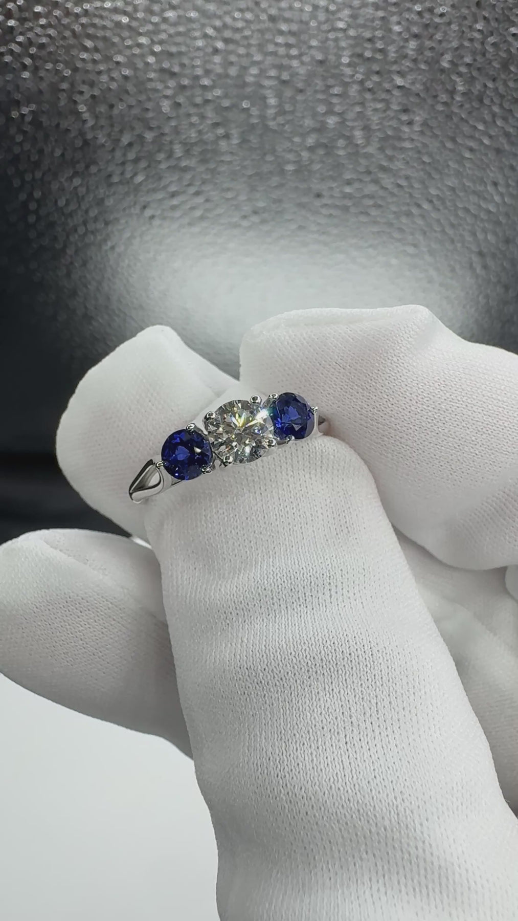 Mira Round Moissanite Blue Sapphire Side Split Shank Cathedral Hybrid Engagement Ring-Custom-Made Jewelry-Fire & Brilliance ®