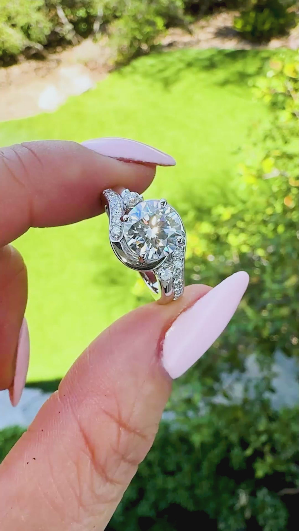 Main Stone: 8mm Round Center @ approximately 2 Cts. DEW