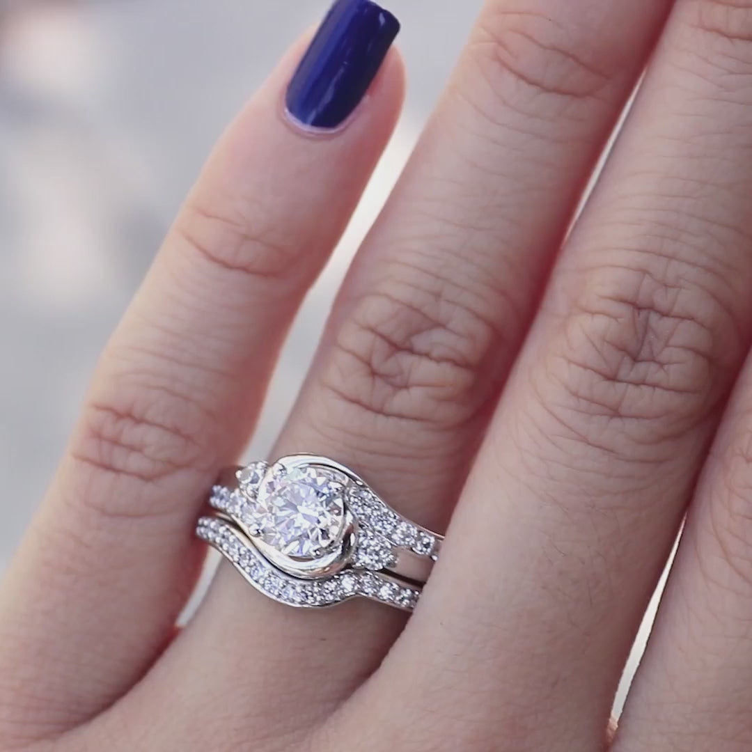 8mm Round Center 14K White Gold Diamond 4 Prong Split Bypass Shank Ring
